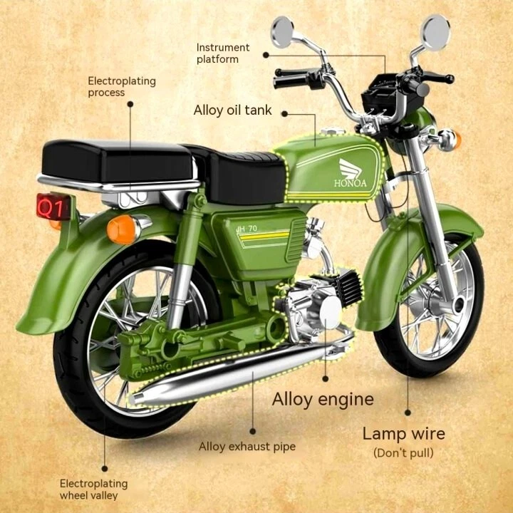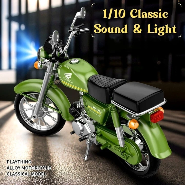 1/10 Vintage Honda JH-70 Motorcycle Model Diecast Bike Toy Light & Sound Green NEW (HL-M102A )