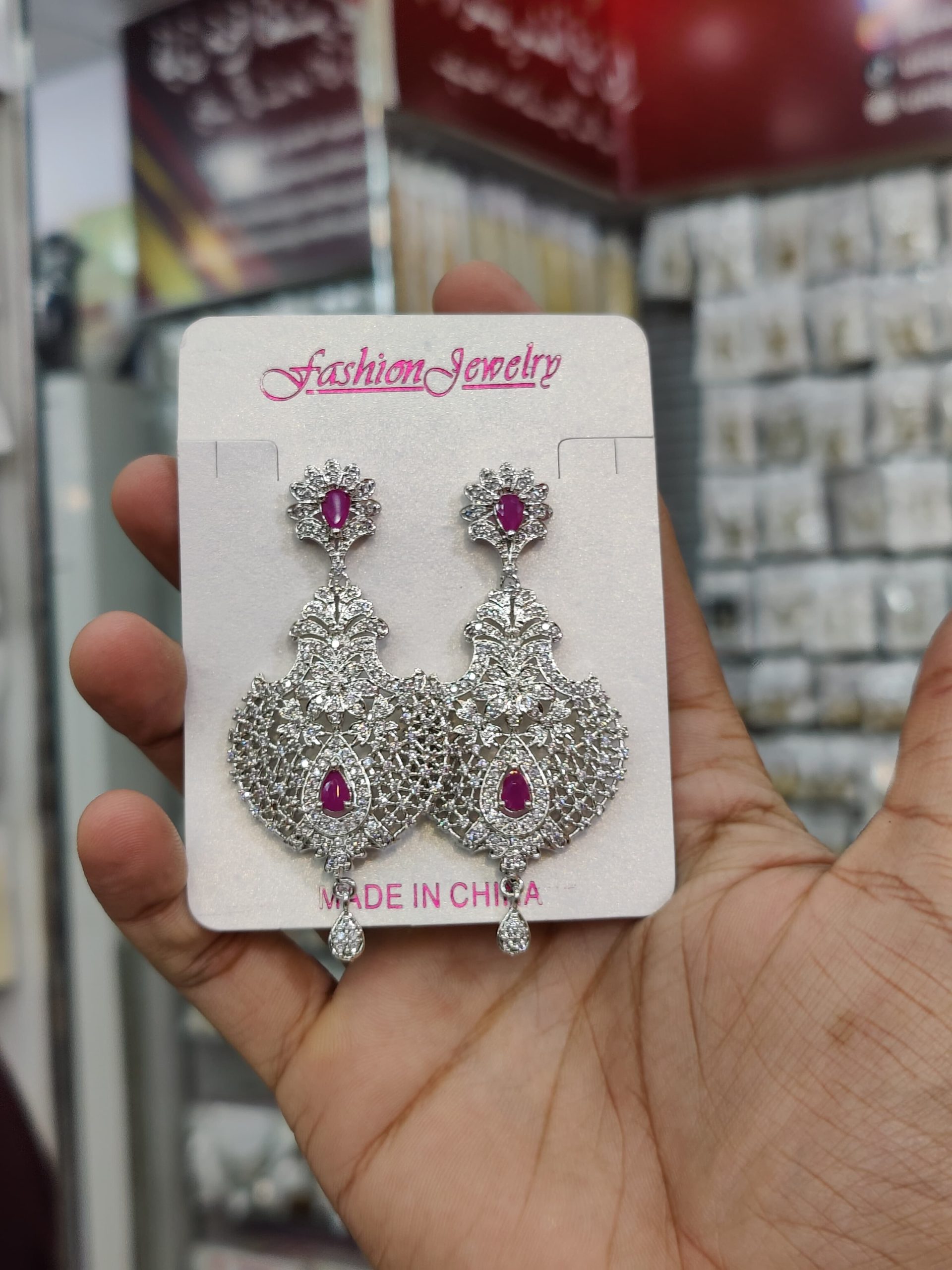 One Carat American Diamond Stones Earrings Exclusive By Unique Fancy Jewellery.