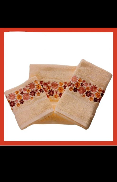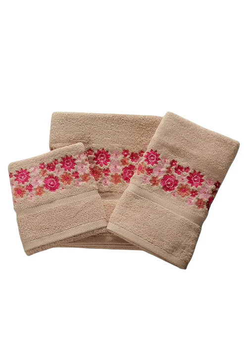 3 Piece Embroidered Towel Gift Set – Floral Pattern Design