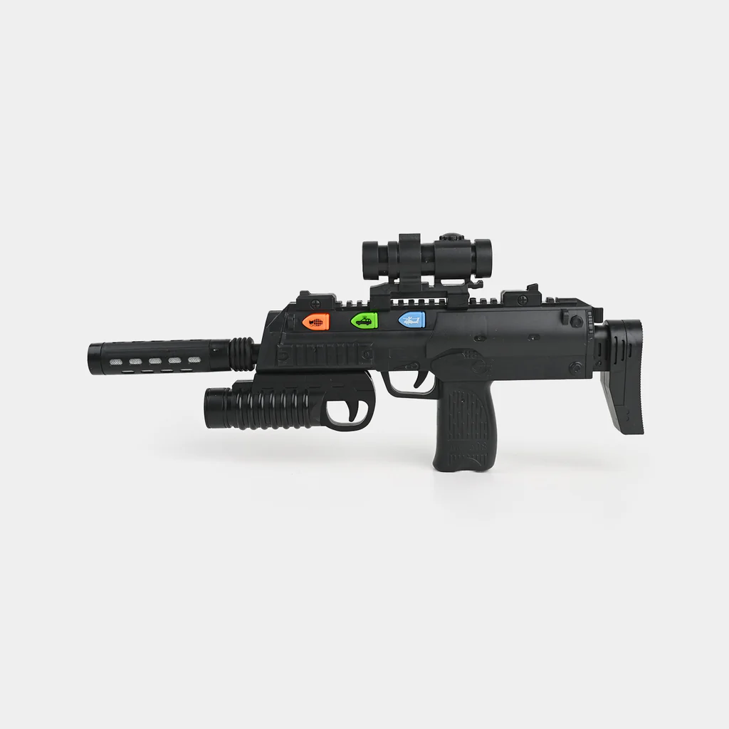 This Toy  Provide Your Child The Good Quality Toys. While Playing With These Toys Your Child Will Not Only Grasp Some Knowledge But Also Explore New Things. Your Kid Will Enjoy While Playing With This. Also This Is The Good Thing To Gift To A Kid. A Wonderful Army Gun Which Is 2 Feet Long. Its Fun For Boys With Flashing Lights And Sound Effects. The Real Saviors Would Love To Play With This. Gift Them And See An Ear To Ear Smile On Little Soldier Face High Quality Abs Plastic Durable Gun 3 Aa Batteries Required (Not Included) This Musical Army Style Gun will Vibrate when you use it.