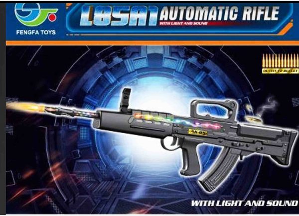 Machine Gun that makes realistic sounds when fired, This Toy Gun has 3D Light. The machine toy gun is made with attention to detail to make sure each toy gun is perfectly constructed. The lights are bright and the sound effects are clear. This machine gun toy is perfect for every child. The machine toy gun is made with attention to detail to make sure each toy gun is perfectly constructed.