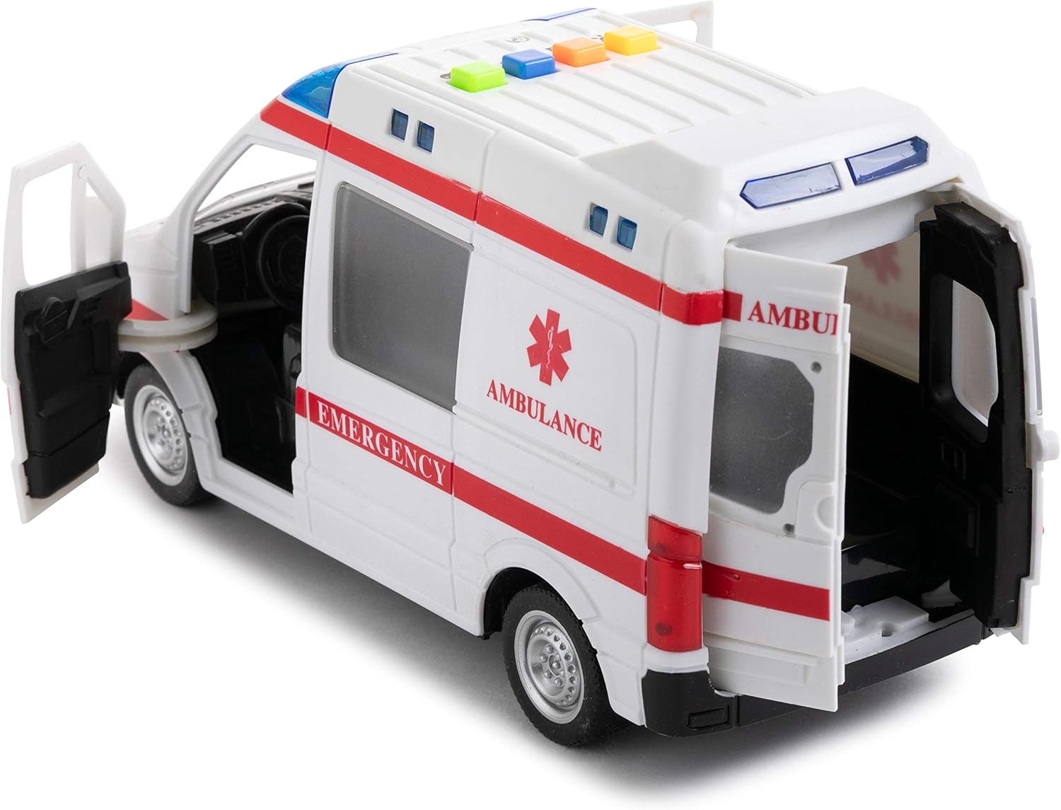 - REALISTIC DETAILINGS: The meticulous details of the ambulance toy truck or emergency vehicle toy make it look like a real rescue vehicle. The front door and back door can be opened and closed; it features a steering wheel, driver’s seat and back seat for patients. This toy weighs 15.8 oz with dimensions 3 by 3 by 3 inches.
