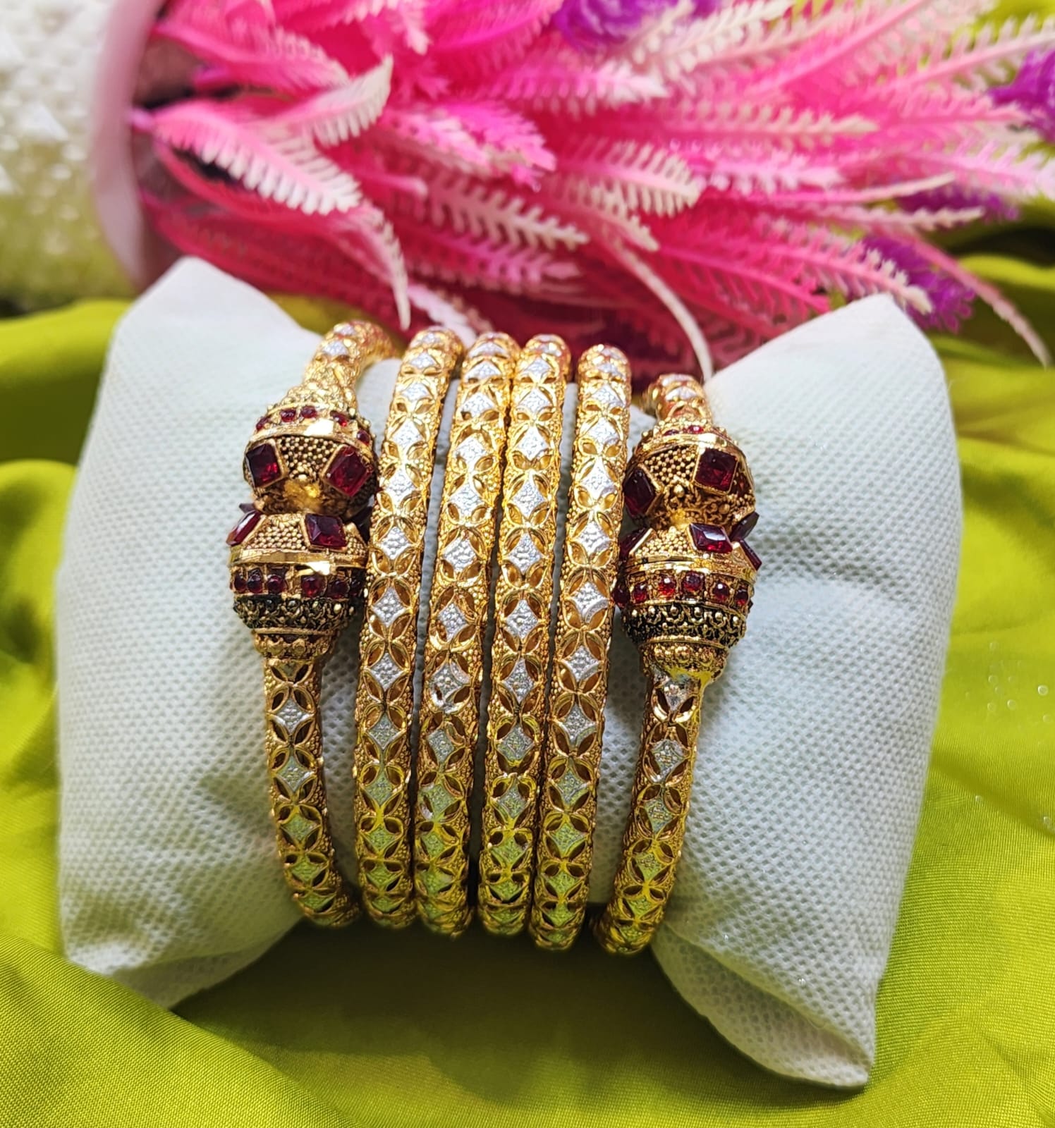 Casting Made Gold Plated 6 Pcs Kara Set Exclusive By Unique Fancy Jewellery For Women.
