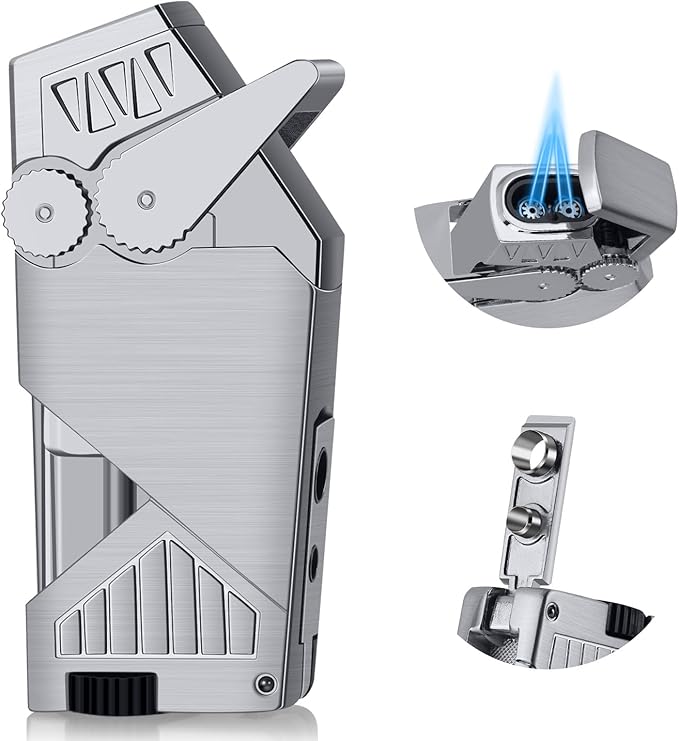 Cigar Lighter Double Jet Flame, Refillable Butane Torch Lighter