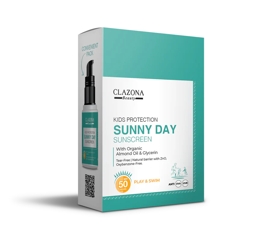 Clazona Kids Sunscreen SPF 50 is a gentle yet effective cream sunscreen specially created for delicate, sensitive skin. Enriched with organic almond oil and moisture-rich glycerin, it works like a dry skin sunscreen cream—deeply hydrating while forming a natural barrier against harmful UVA and UVB rays using non-nano Zinc Oxide (ZnO).