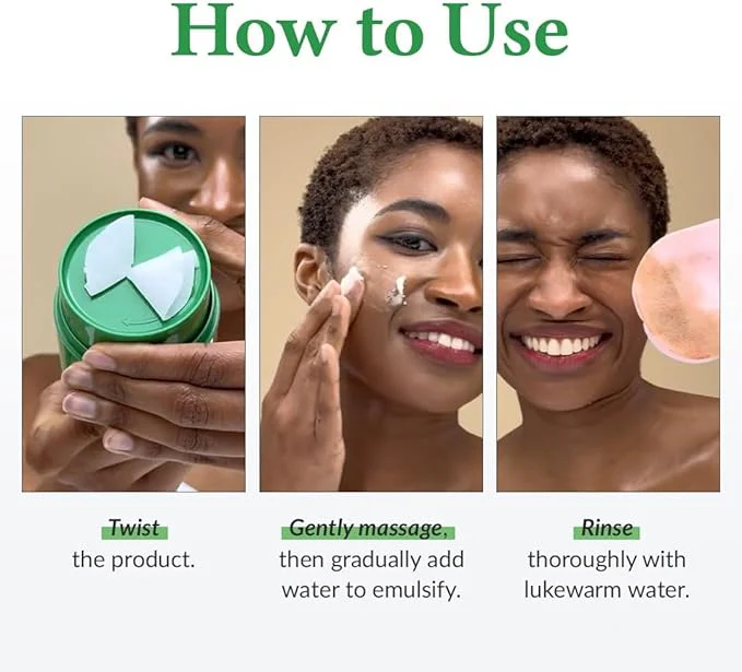 Gently massage onto dry skin in a rolling motion to dissolve makeup and impurities.