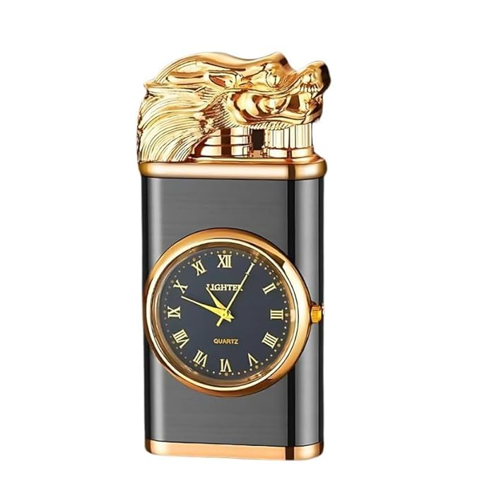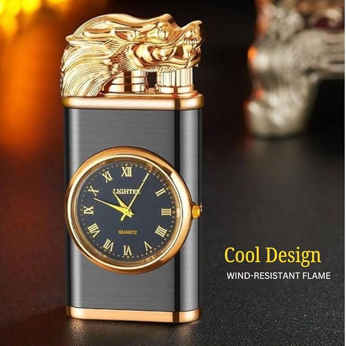 Dragon Watch Lighter with Dual Flame & Clock Windproof Metal Lighter