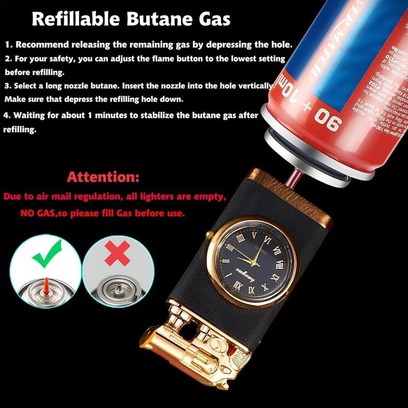 Adjustable Flame Control: Allows precise flame customization, catering to various needs like lighting cigarettes, cigars, or campfires effortlessly.Windproof Technology: The strong and reliable jet flame ensures performance in windy outdoor environments, making it ideal for camping, hiking, and other adventures.Premium Build Quality: Constructed with a durable metal body for enhanced longevity while maintaining a sleek and modern aesthetic.