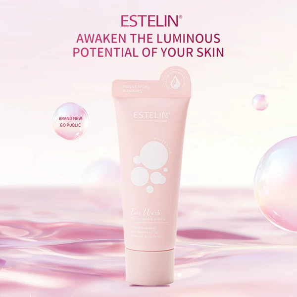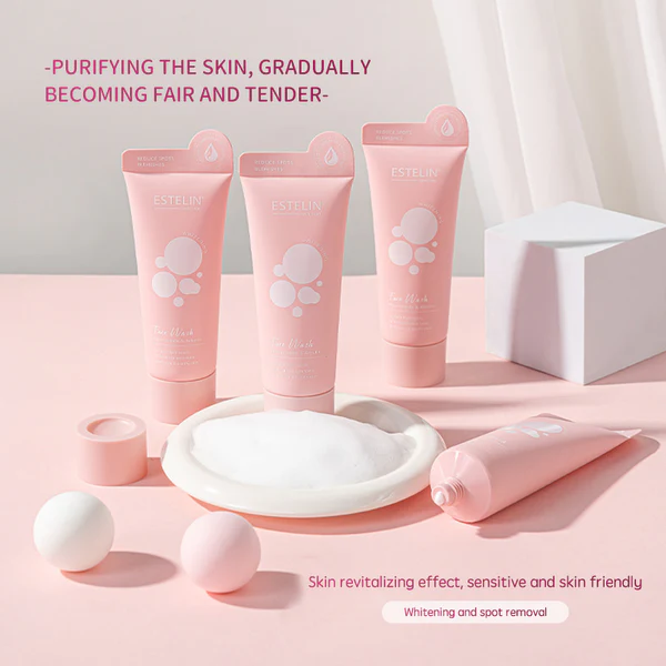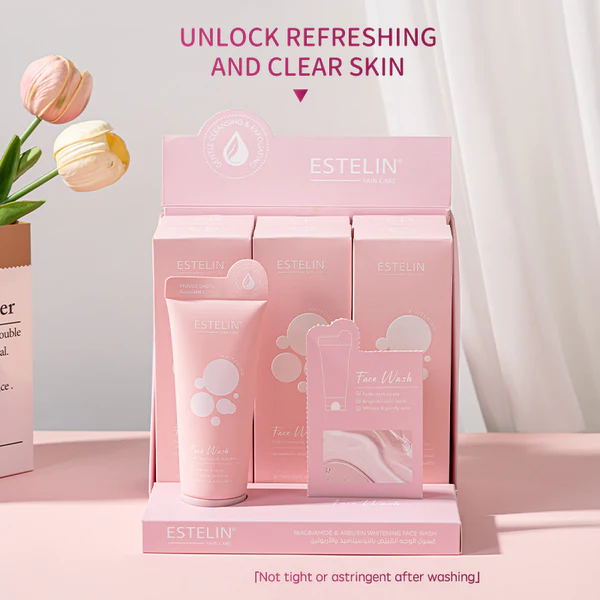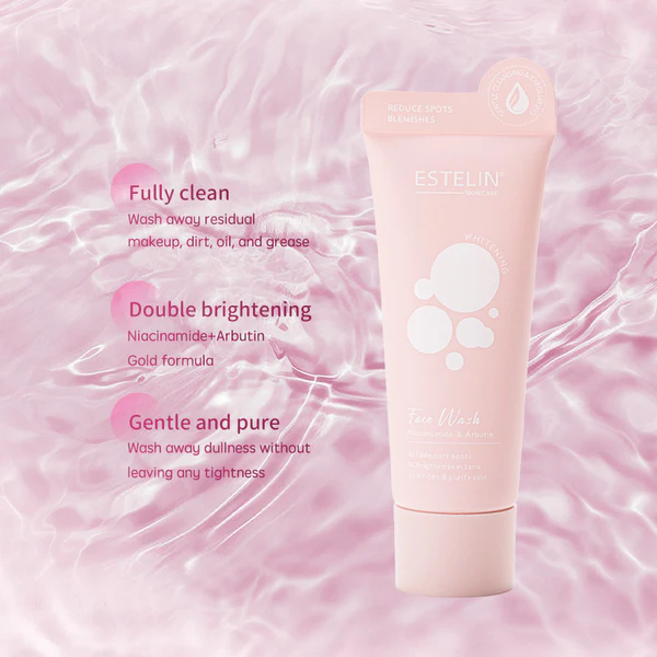 Estelin skincare line, specifically the Estelin Niacinamide & Arbutin Whitening Face Wash. These cleansers are marketed for purifying the skin, gradually brightening the complexion, and removing dark spots.