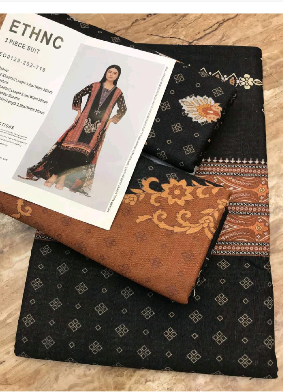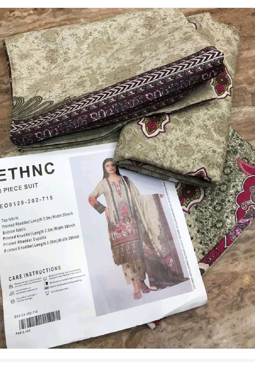 Ethnc Khaddar Collection (Unstitched) 3 Piece, Winter Collection, New Collection 2025.