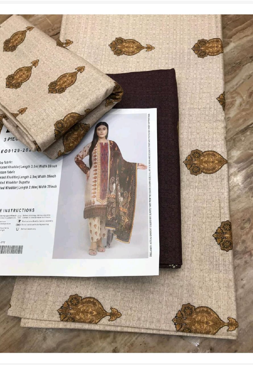 Shirt: Printed Khaddar Length 3.0m Width 39 inch Bottom Fabric