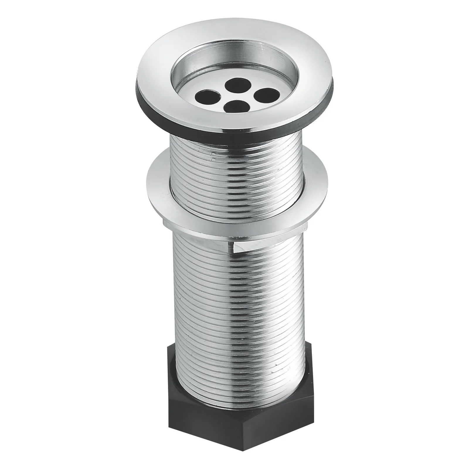 3. Installation: Features a threaded body and a securing nut for installation into the basin’s drain hole.