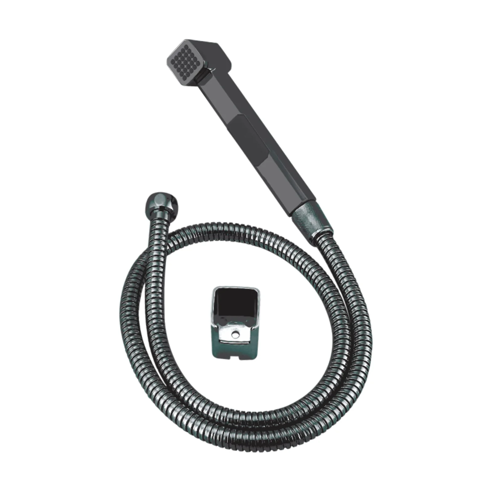 Used for personal hygiene in the bathroom, typically as an alternative or addition to toilet paper. The set commonly includes a hand shower head, a flexible hose (often 1 or 1.5 meters long), and a bracket for wall mounting. These sets are often made with a black gold plated (CP) finish for durability and a clean look. Designed for easy installation, often requiring no special tools. Widely available in different sizes.