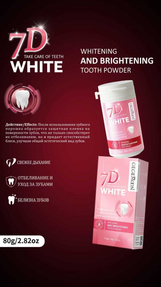 Gegemoon 7D White Whitening Tooth Powder, 80g: