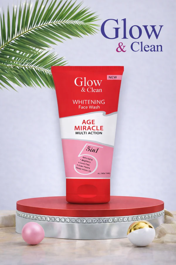 The Glow & Clean Age Miracle 5-in-1 Whitening Face Wash is a multi-action cleanser designed to target early signs of aging while brightening the complexion.