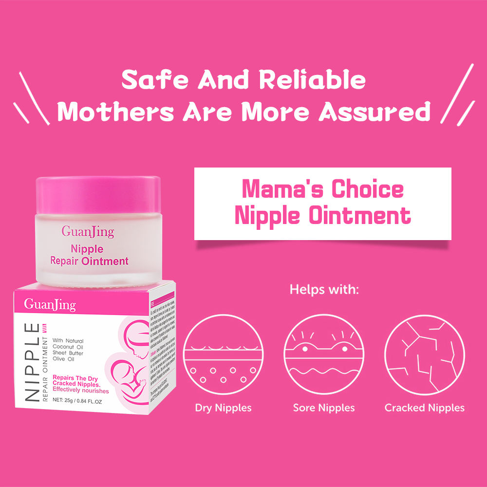 GuanJing Nipple Repair Cream is a specially formulated nourishing cream designed to help relieve dryness, cracking, and discomfort in sensitive skin areas. Enriched with natural coconut oil, shea butter, and olive oil, this cream provides deep moisturization while supporting skin barrier repair. A product designed to soothe and nourish sensitive, dry, or cracked skin, particularly for breastfeeding mothers