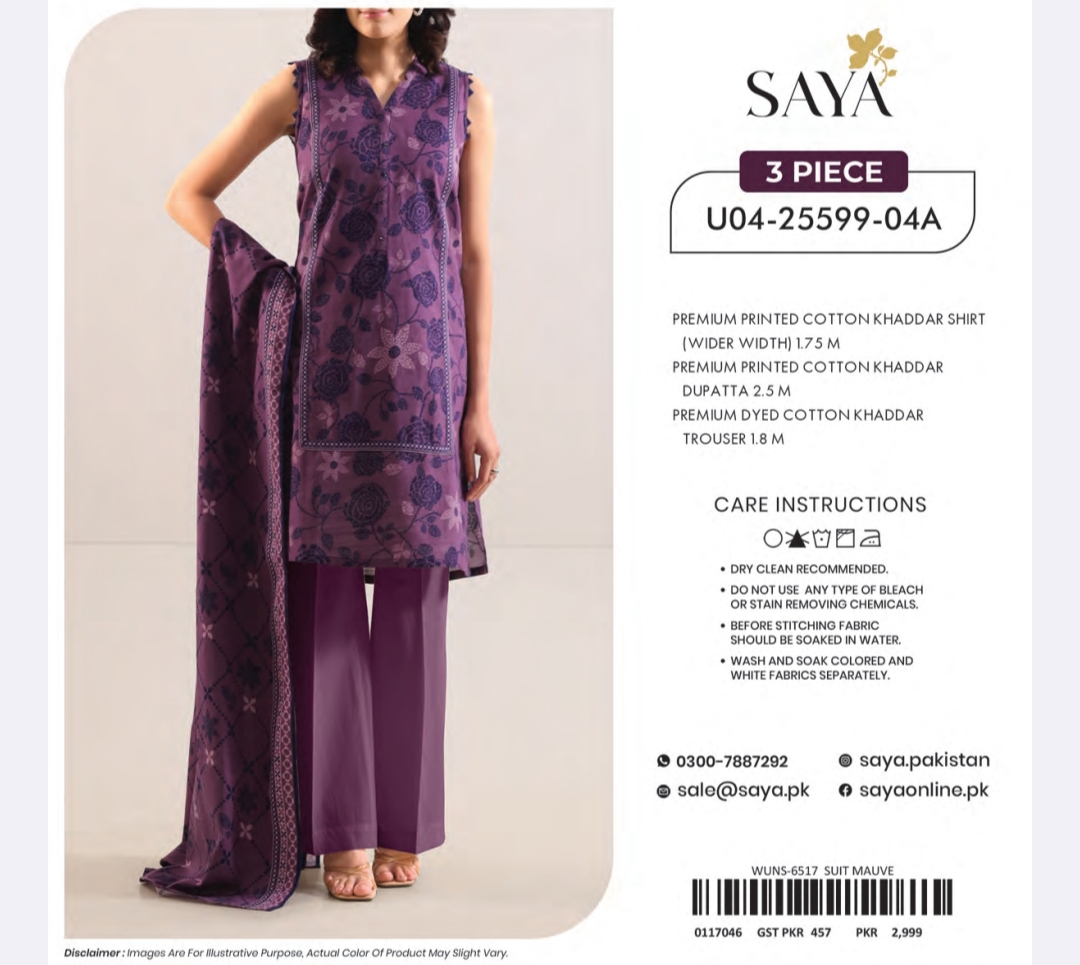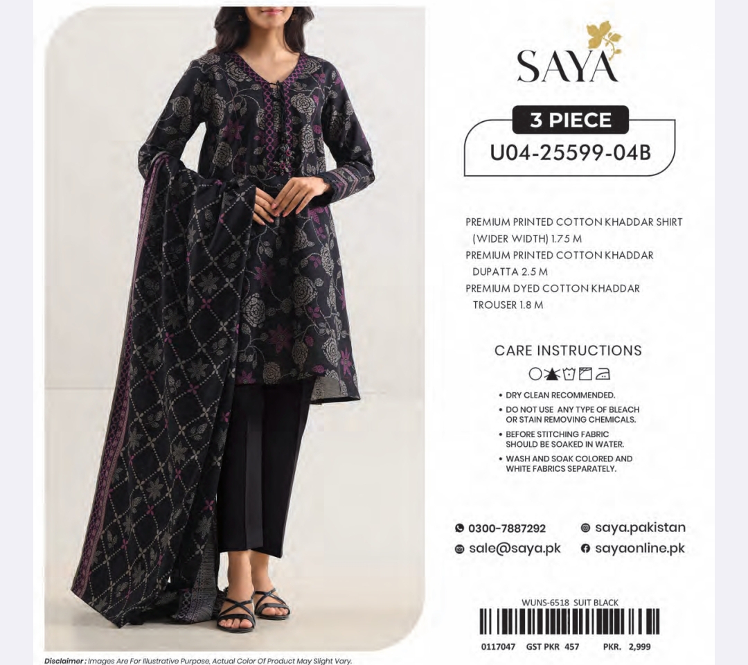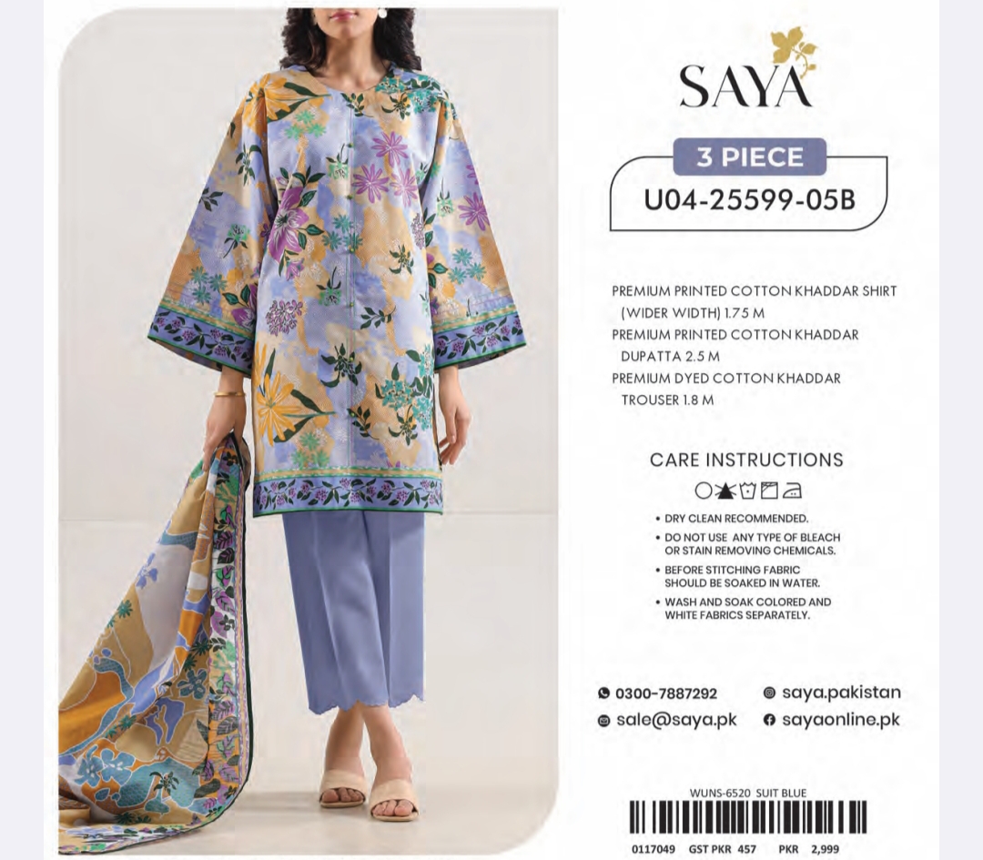 Khaddar Collection By Saya (Unstitched) 3 Piece, Winter Collection, New Collection 2025.