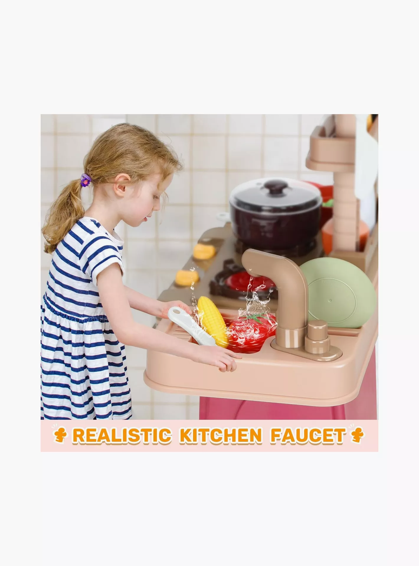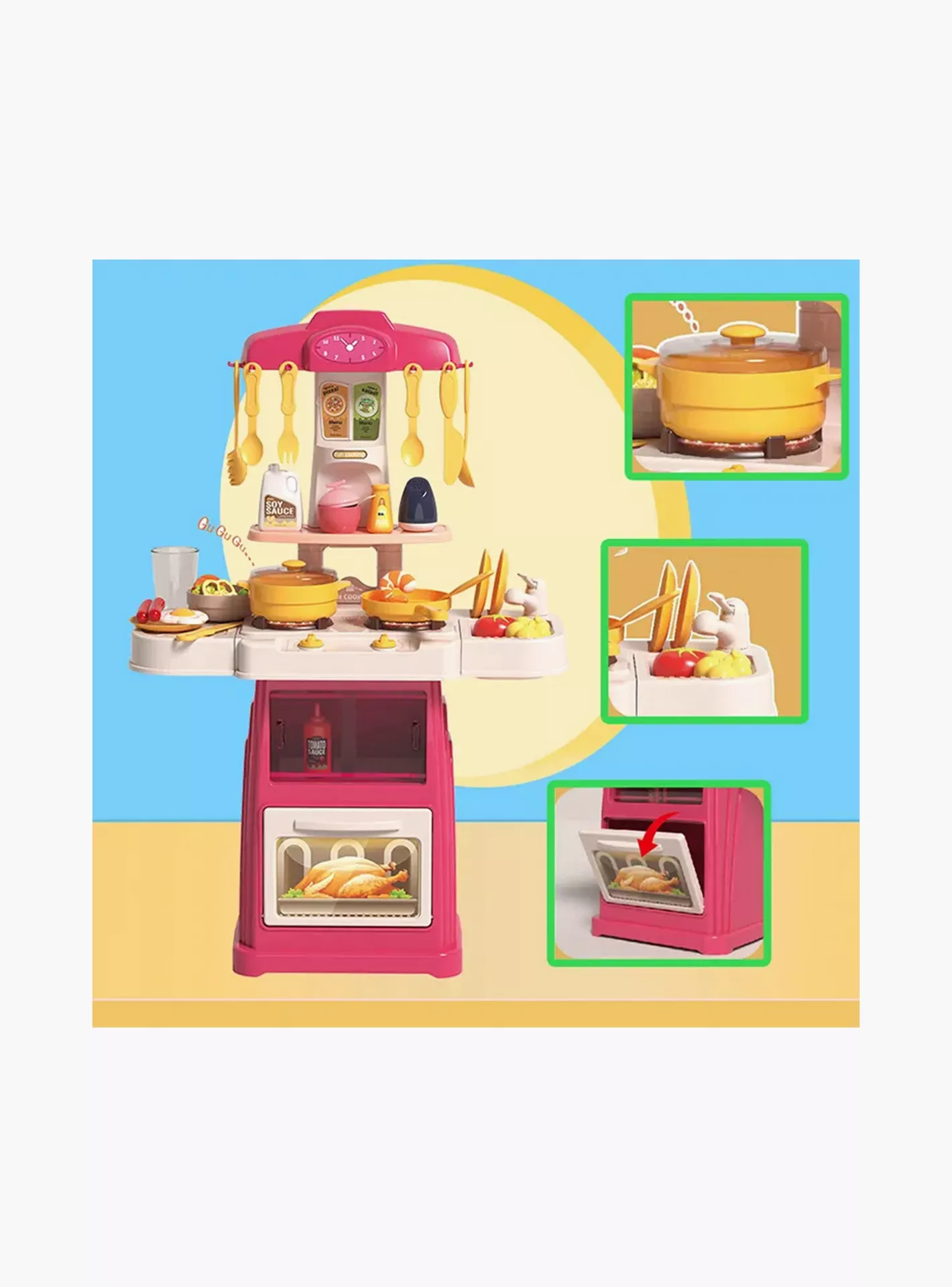 Introducing the Little Angel Kid’s Kitchen With Light & Sound Toys Playset – an immersive and interactive children’s kitchen designed to inspire hours of imaginative play. This multifunctional kitchen set, complete with a play stove, toy sink, oven, and realistic kitchen accessories, provides a lifelike cooking experience for your little ones. Encourage your child’s love for cooking and inspire a sense of responsibility with the Little Angel Kid’s Kitchen. This pretend playset is perfect for fostering social interaction, cognitive learning, and the development of essential life skills, making it an ideal choice for endless hours of entertaining and educational play.