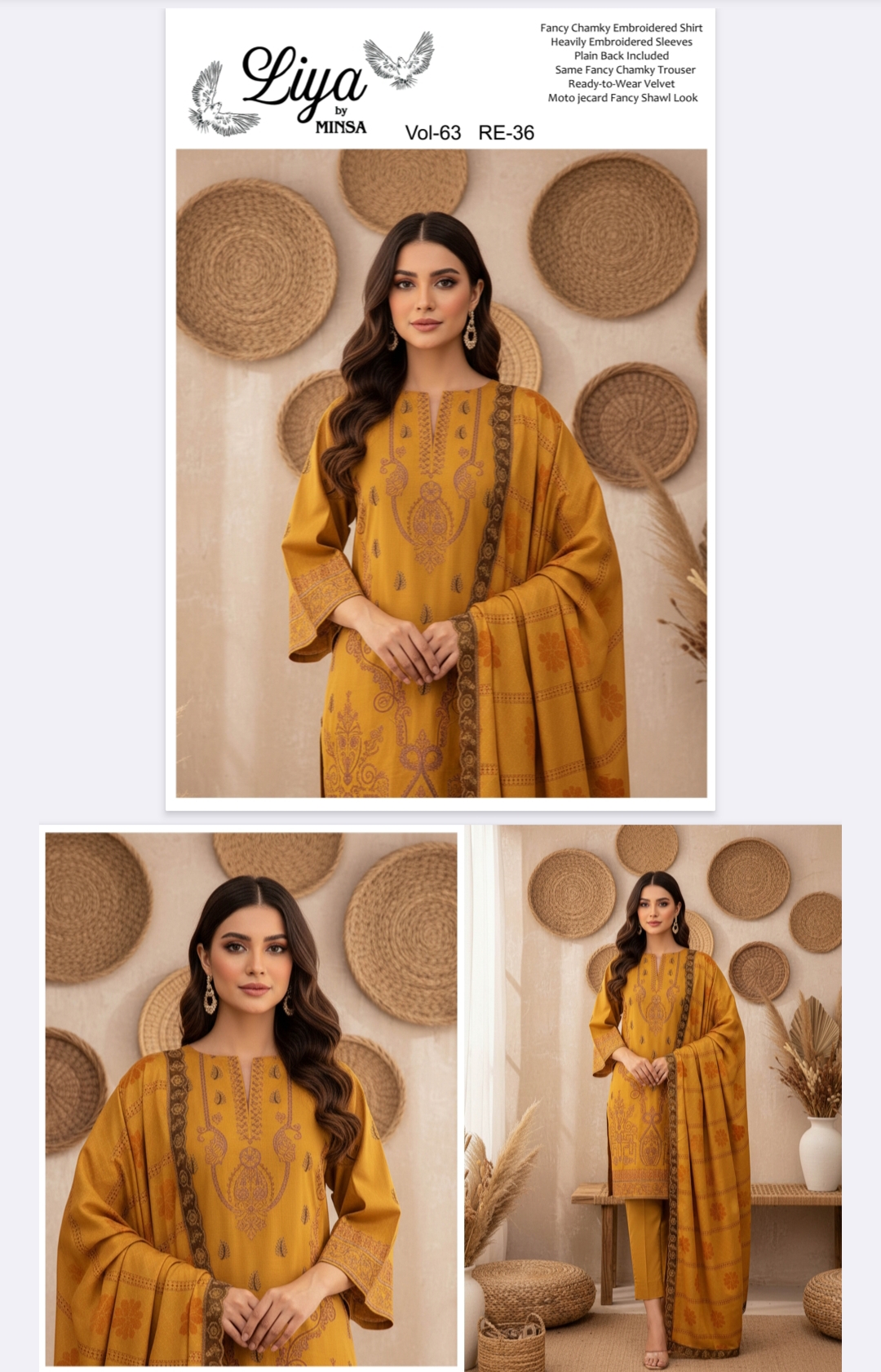 Liya By Minsa Embroidery Collection, (Unstitched) 3 Piece, Vol 63, Winter Collection, New Collection 2025.