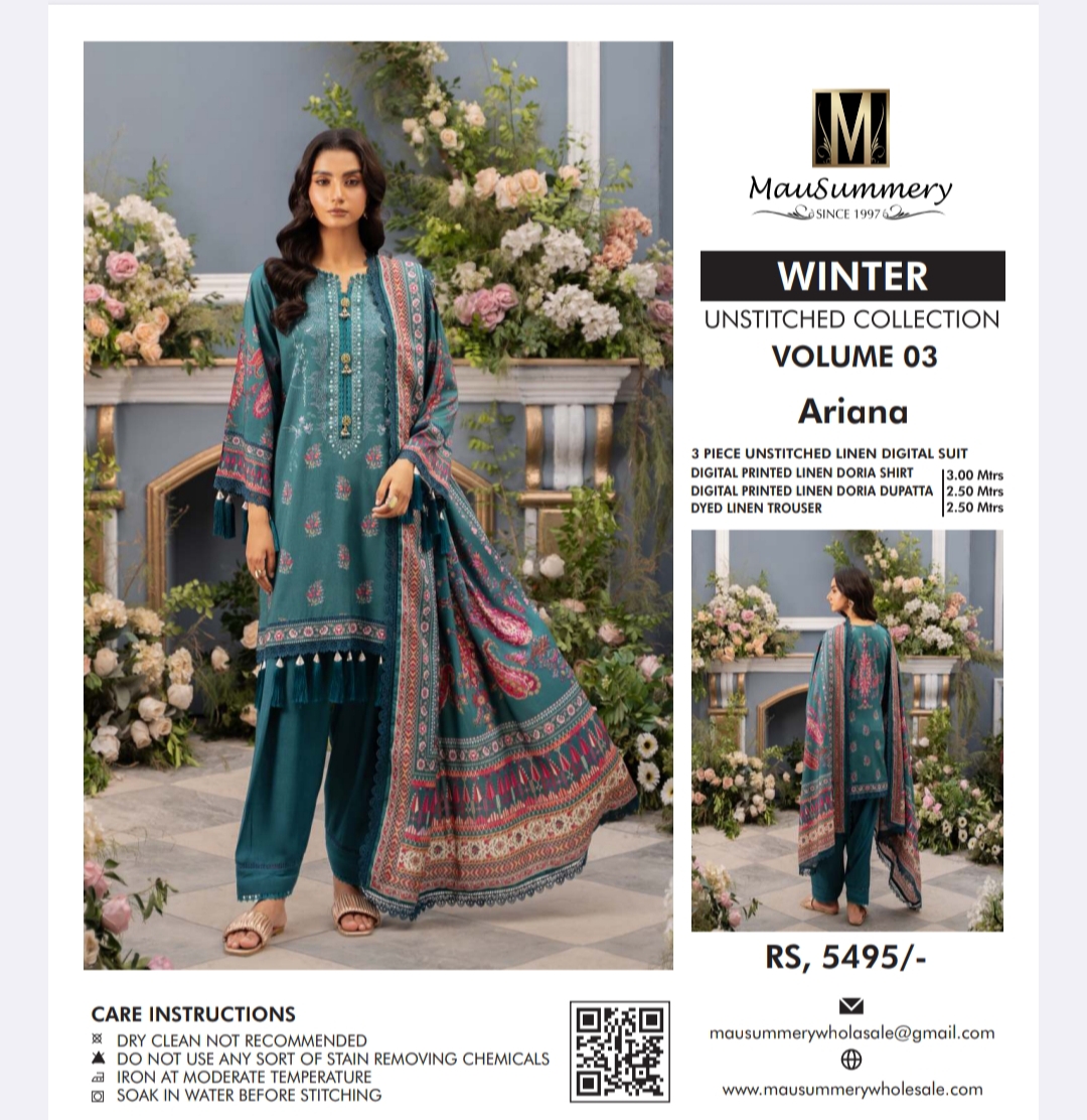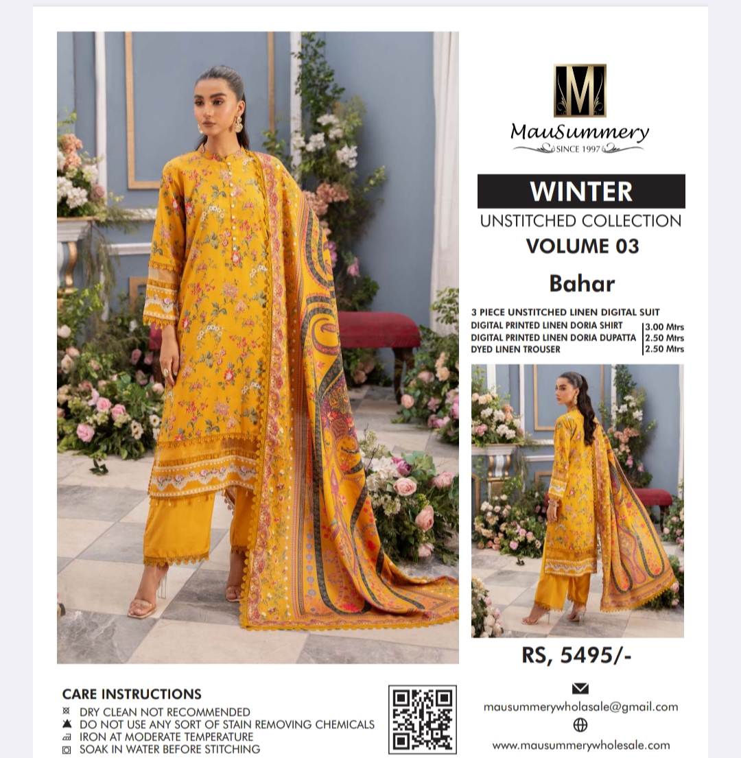 Mausammery Linen, Volume 3 (Unstitched) 3 Piece, Winter Collection, New Collection 2025.