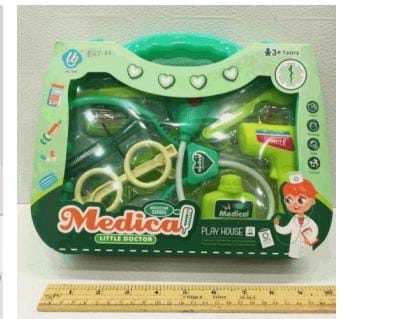 The Medical Little Doctor Set is a comprehensive play medical kit designed for children aged 3 and up. Featuring a turquoise carrying case decorated with heart motifs, this set includes various toy medical instruments and accessories that encourage imaginative medical role-play.