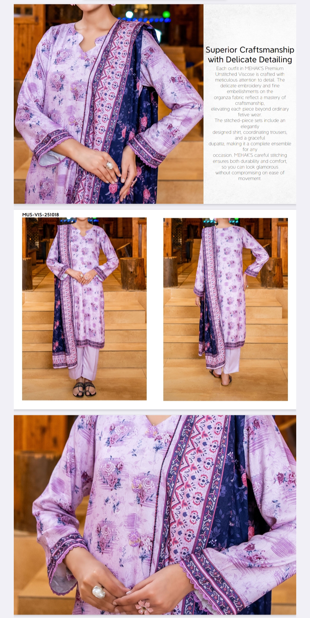 Mehak Premium Viscose Collection (Unstitched), Volume 01, 3 Piece, Winter Collection, New Collection 2025.