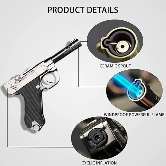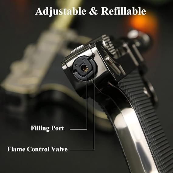 - DESIGN: Unique gun-shaped lighter with sleek metallic construction and ergonomic grip for comfortable handling