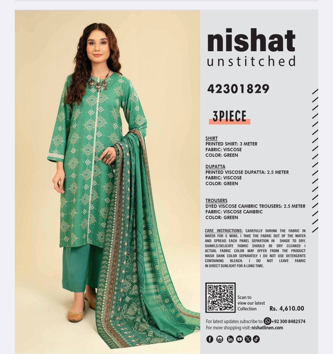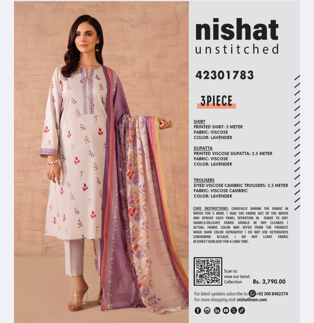 Nishat Viscose Collection (Unstitched) 3 Piece, New Collection 2025.