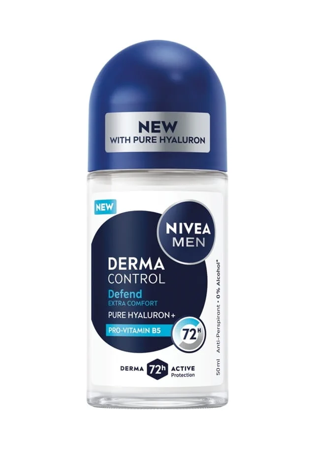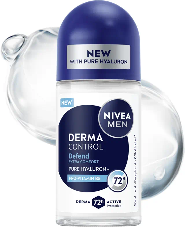 NIVEA MEN Derma Control Defend Extra Comfort Roll-On, a high-performance antiperspirant designed for both strong protection and skin care.