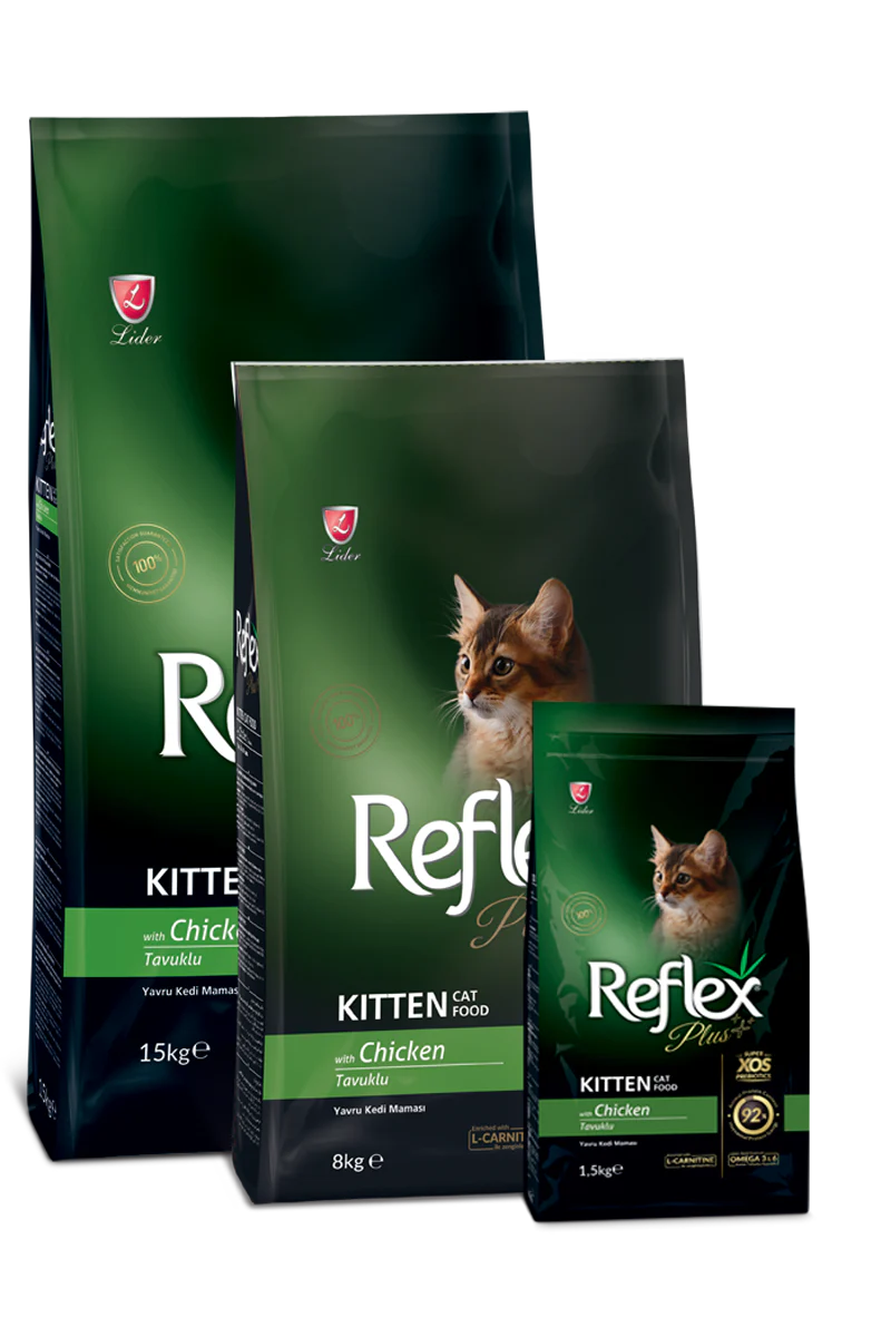 Reflex Plus Kitten Food with Chicken features a complete and balanced formula with essential nutrients that support the increased energy needs of kittens during their growth phase, while also aiding in healthy weight gain. It supports the digestive and immune systems and contributes to maintaining healthy skin and coat. With its unique content and balanced nutritional profile, it provides comprehensive support for the body’s functions during kittenhood.