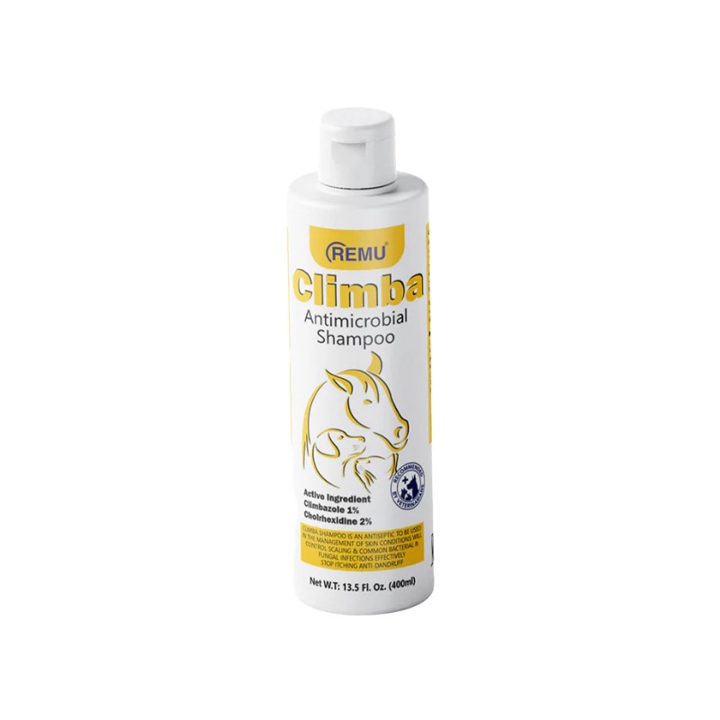 Which is effective for Dogs, Puppies, Cats, Kitten, and Horses Skin. Climba Shampoo Combines a Unique Formulation of Antibacterial & Antifungal Agents with Coat Conditioners for Optimal Therapeutic Effectiveness. This Medicated Shampoo Base Descales and Decrease the Hair Coat without Stripping