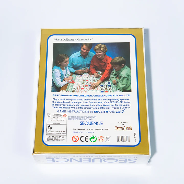 - Includes 1 Folding Game Board (19.75″ x 15.25″), 2 Decks of SEQUENCE Playing Cards (2.25″ x 3.5″), 135 Playing Chips (50 Green, 50 Blue, 35 Red), and Complete Instructions
