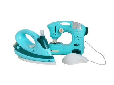 A play set for mom’s little helper. Includes a sewing machine and iron. The sewing machine works just like the real thing, yet is safe for children! This musical sewing machine features a beautiful light, a moving plastic needle, and a hand pedal, simulating the work of a real seamstress. This toy iron is designed for girls’ role-playing. Now they can iron their dolls’ clothes just like their mother does. This toy iron is very lightweight and small, making it easy to hold in a child’s hand. The light effect makes the iron engaging and realistic. Powered by 4 AA batteries (not included)