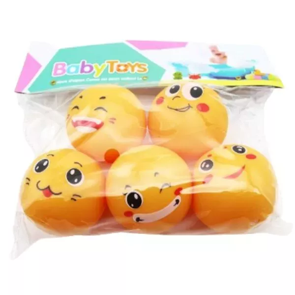 Soft, smiley-patterned squeaky ball set For Kids- 5 pieces (560A-33 )